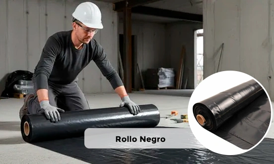 Rollos anchos, negros, transparente y de invernadero.
